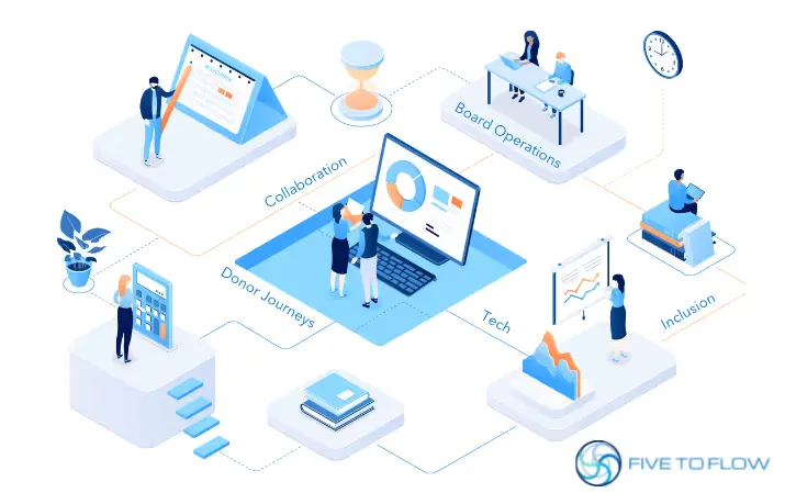 Our five-part series takes a closer look at Five to Flow’s five core elements through a nonprofit lens to help you improve your organization’s sustainability and impact. In Part 1, we focused on people and the ways that leaders can foster a healthy work environment for employees, and meaningfully engage donors and volunteers to support the growth of your nonprofit organization.